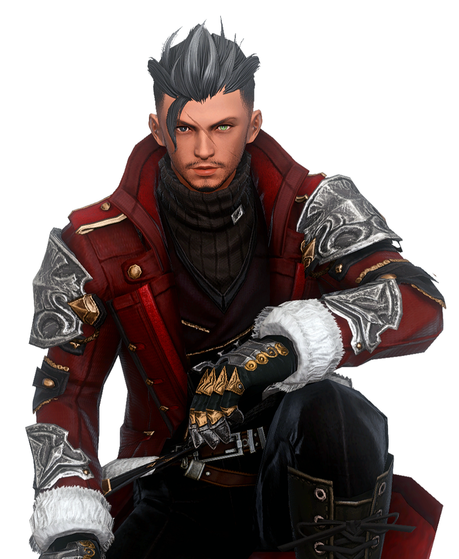 Raphael de León Rosa, now going by the name Regnier Soldati heads to Eorzea with nothing more than some adventuring gear, a broadsword and the Emerald Gem. He makes his way to Ul'Dah and signs up for the Adventurer's Guild. While handling the daily tasks of an adventurer, he befriends Draconis Firebane, a Xaelan marauder claiming to be one of many people from the Emigration of Azeroth. Together with Draconis' pet wolf, both joined the Immortal Flames Grand Company and lived their days as honest adventurers. After enough time and experience, both Regnier and Draconis were able to enter the cities of Ishgard, Ala Mhigo, Kugane and the newly rebuilt Doma in the Far East. However, their team would be split when they both enter one of the Source's reflections...the First. Despite peaceful times in the First due to the Warrior of Light's actions, there were still stray sin eaters to contend with and Regnier contended with such a foe. Although he easily dispatched of the sin eater, he was struck and started developing an abundance of aether within his body. Unable to progress any further until his sickness subsided, Regnier resorted to hide the pain by way of alcohol. On one night, however, as he was making his way back to the inn from the Empyreum Residential District, he stumbled upon a homeless Elezen and went to his aid.However, sincerity turned to deception as the homeless Elezen was the disguise of MALICE, loyal servant to the former General BLITZ and trained assassin. Regnier immediately went on the offensive, but with the light slowly consuming him, his inebriated state and difference in skill proved too much. In a swift strike, MALICE sliced Regnier's left eye and left him for dead. With his body slowly starting to fail, all seemed hopeless until a familiar blue-haired Miqo'te mended his wounds and took him to the chirurgeons of the Firmament. As Regnier awoke from his pain, he quickly realized that his vision is starting to fail him, with a lack of depth perception and the Light blinding his sight. The chirurgeon gravely told him that due to the extensive damage his body has taken over the years, it would be a matter of time before he died. Hopeless to do anything, Regnier, pulled out the Emerald Gem and made a prayer to the goddess, Cordelia. As his prayer went on, his left hand holding the gem started moving closer to his left eye and with no control of his own struck the Emerald Gem into his eye socket. The gem started to pulsate and slowly fade out as his eyesight started to restore and the Light sickness suppressed. Now, the Emerald Gem stood a solid gray color, as if all its radiance drained and in turn, Regnier's left eye shined a sheen emerald color and his energy back to his normal state. Supposedly cured, he returns to the front lines and reunites with Draconis as he and several members of the Immortal Flames were tasked to assist Garlemald during the Final Days...a calamity that threatened the stability of the Source. During this event, Regnier's newfound heterochromia and his previous leadership tactics come to light, helping the Flames with an advantage over the blasphemies.POST FINAL DAYS